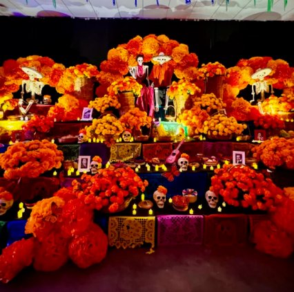 Of course, no Day of the Dead celebration would be complete without the traditional Altars of the Dead, which add to the mystical atmosphere surrounding Teatro Angela Peralta on this special occasion.
