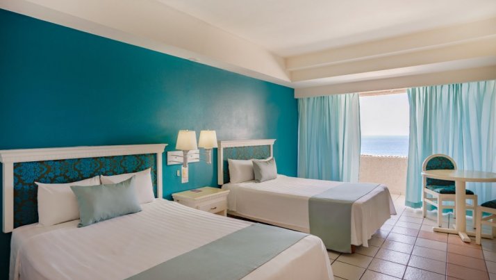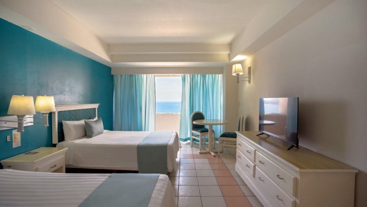 * Food service and non-alcoholic beverages from 7 am to 1 am and alcoholic beverages from 10:00 am to 1 am (selected beverages). * Buffet style breakfast, lunch and dinner at "La Terraza" Restaurant (7 am to 10:00 pm), afternoon snacks at "AquaBar" (12 to 6:00 pm) * Buffet style breakfast and themed dinner at "Sunset" Restaurant, specialty seafood at "La Cevicheria" Restaurant, "Pelican" with specialty French, Italian, International and Mexican four-course dinner (with previous reservation, on selected days) "Sushi Market" with a great variety of sushi food (with previous reservation, on selected days) "Sushi Market" with a great variety of sushi food * Alcoholic drinks (National cocktails and beer) from 10 am to 1 am, at the following bars Gran Central (10 am to 1 am), Aqua Bar (12am to 6 pm), and Polinesio (12 am to 6 pm). Open Bar and 2 international whiskies ( William Dawson and Black and White)from 10 am to 1 am. * Family night shows at the Mediterranean Room (Different themed shows on selected days) * Family daily activities at the pool area or the beach (ask for your activities brochure) * All Inclusive Plan starts at 1 P.M. of you arrival day